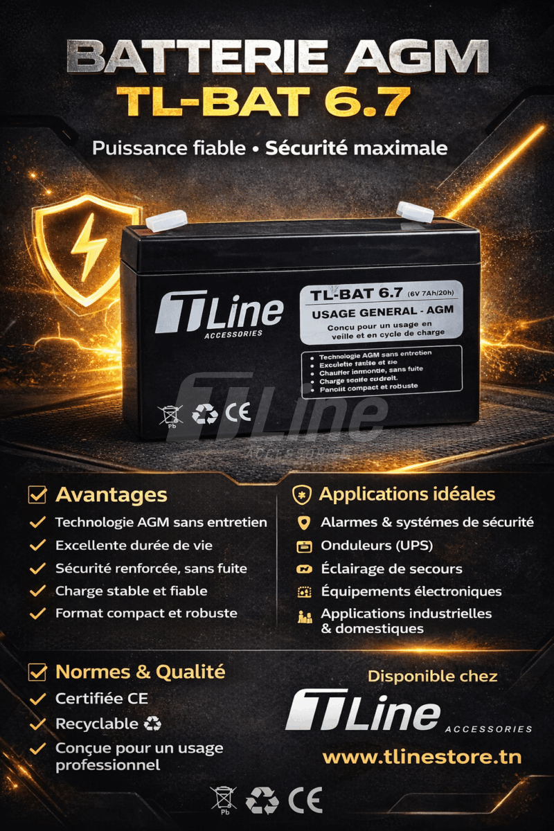 BATTERIE TLINE sans entretien AGM 6V 7,0AH